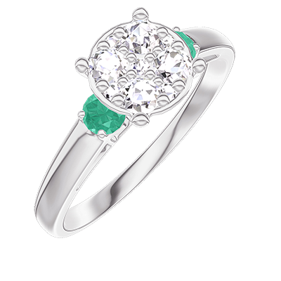 « L'ATELIER » Nº 210883Bague Or blanc 18 carats - Cluster de diamants naturels Rond équivalent 1 - Pierres de côté Émeraude 4.8 (14)