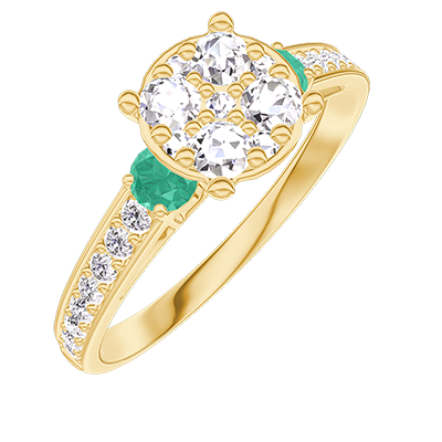 « L'ATELIER » Nº210886Bague Or jaune 9 carats - Cluster de diamants naturels Rond équivalent 1 - Pierres de côté Émeraude - Sertissage Diamant 4.8 (14)