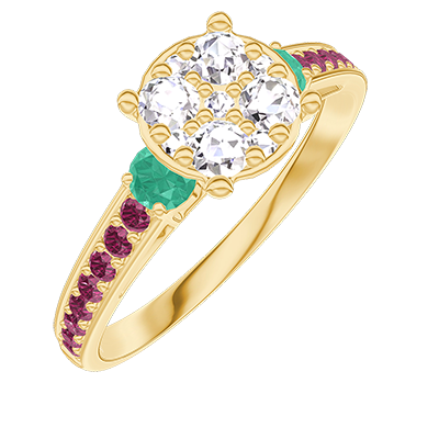 « L'ATELIER » Nº210890Bague Or jaune 9 carats - Cluster de diamants naturels Rond équivalent 1 - Pierres de côté Émeraude - Sertissage Rubis 4.7 (11)