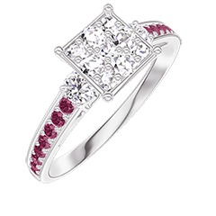 Pourquoi nous faire confiance ? « L'ATELIER » Nº 210931 Bague Or blanc 18 carats - Cluster de diamants naturels Princesse équivalent 1 - Pierres de côté Diamant - Sertissage Rubis