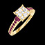 Bague Or jaune 18 carats - Cluster de diamants naturels Princesse équivalent 1 - Pierres de côté Rubis - Sertissage Rubis
