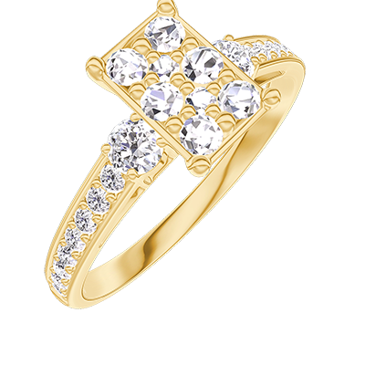 « L'ATELIER » Nº211026Bague Or jaune 9 carats - Cluster de diamants naturels Rectangle équivalent 1 - Pierres de côté Diamant - Sertissage Diamant 4.6