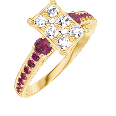 « L'ATELIER » Nº211049Bague Or jaune 18 carats - Cluster de diamants naturels Rectangle équivalent 1 - Pierres de côté Rubis - Sertissage Rubis 4.6 (5)