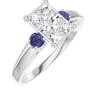 « L'ATELIER » Nº 211064Bague Or blanc 9 carats - Cluster de diamants naturels Rectangle équivalent 1 - Pierres de côté Saphir bleu 4.6