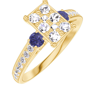 « L'ATELIER » Nº211065Bague Or jaune 18 carats - Cluster de diamants naturels Rectangle équivalent 1 - Pierres de côté Saphir bleu - Sertissage Diamant 4.6