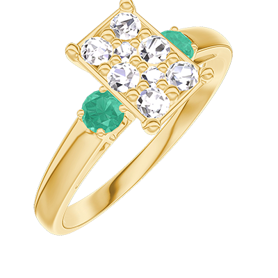 « L'ATELIER » Nº 211081Bague Or jaune 18 carats - Cluster de diamants naturels Rectangle équivalent 1 - Pierres de côté Émeraude 4.6 (5)