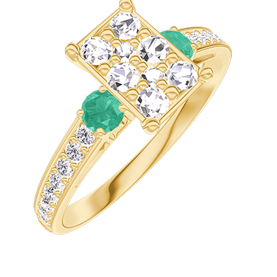 « L'ATELIER » Nº211085Bague Or jaune 18 carats - Cluster de diamants naturels Rectangle équivalent 1 - Pierres de côté Émeraude - Sertissage Diamant 4.6