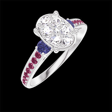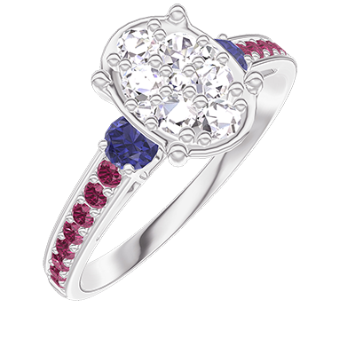 « L'ATELIER » Nº 211171Bague Or blanc 18 carats - Cluster de diamants naturels Ovale équivalent 1 - Pierres de côté Saphir bleu - Sertissage Rubis 4.7