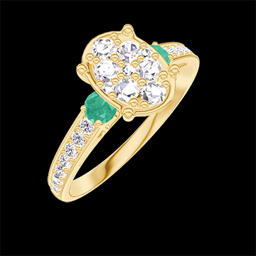 « L'ATELIER » Nº211186Bague Or jaune 9 carats - Cluster de diamants naturels Ovale équivalent 1 - Pierres de côté Émeraude - Sertissage Diamant 4.7 (9)