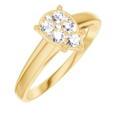 « L'ATELIER » Nº211202Bague Or jaune 9 carats - Cluster de diamants naturels Poire équivalent 1