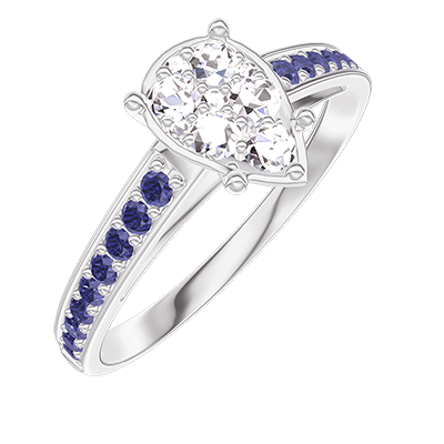 « L'ATELIER » Nº211215Bague Or blanc 18 carats - Cluster de diamants naturels Poire équivalent 1 - Sertissage Saphir bleu