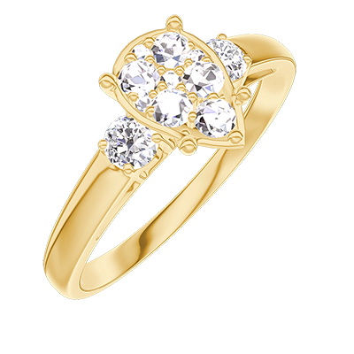 « L'ATELIER » Nº 211221Bague Or jaune 18 carats - Cluster de diamants naturels Poire équivalent 1 - Pierres de côté Diamant