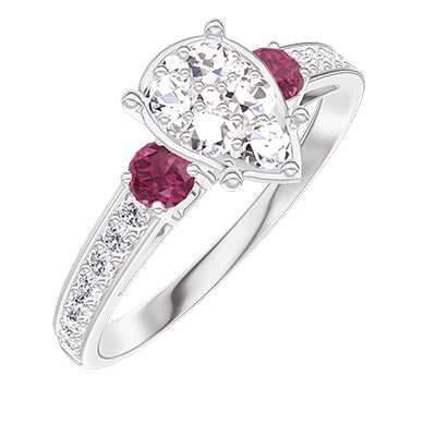 « L'ATELIER » Nº211247Bague Or blanc 18 carats - Cluster de diamants naturels Poire équivalent 1 - Pierres de côté Rubis - Sertissage Diamant