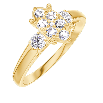 « L'ATELIER » Nº 211322Bague Or jaune 9 carats - Cluster de diamants naturels Marquise équivalent 1 - Pierres de côté Diamant