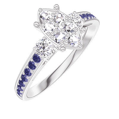 « L'ATELIER » Nº211335Bague Or blanc 18 carats - Cluster de diamants naturels Marquise équivalent 1 - Pierres de côté Diamant - Sertissage Saphir bleu