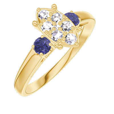 « L'ATELIER » Nº211361Bague Or jaune 18 carats - Cluster de diamants naturels Marquise équivalent 1 - Pierres de côté Saphir bleu