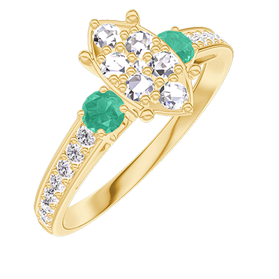 « L'ATELIER » Nº 211385Bague Or jaune 18 carats - Cluster de diamants naturels Marquise équivalent 1 - Pierres de côté Émeraude - Sertissage Diamant