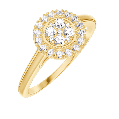 « L'ATELIER » Nº 211402Bague Or jaune 9 carats - Cluster de diamants naturels Rond équivalent 0.5 - Halo Diamant 4.7