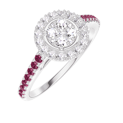 « L'ATELIER » Nº 211412Bague Or blanc 9 carats - Cluster de diamants naturels Rond équivalent 0.5 - Halo Diamant - Sertissage Rubis 4.7