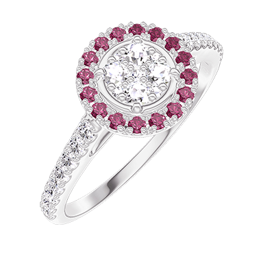 « L'ATELIER » Nº211424Bague Or blanc 9 carats - Cluster de diamants naturels Rond équivalent 0.5 - Halo Rubis - Sertissage Diamant 4.7