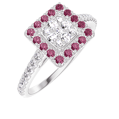 « L'ATELIER » Nº211472Bague Or blanc 9 carats - Cluster de diamants naturels Princesse équivalent 0.5 - Halo Rubis - Sertissage Diamant 4.1 (10)