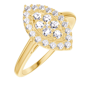 « L'ATELIER » Nº211642Bague Or jaune 9 carats - Cluster de diamants naturels Marquise équivalent 0.5 - Halo Diamant