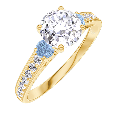 « L'ATELIER » Nº 262684Bague Or jaune 18 carats - Diamant synthétique Rond 0.7 carat - Pierres de côté Topaze bleue - Sertissage Diamant synthétique 4.9 (7)
