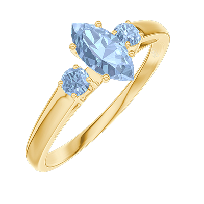 « L'ATELIER » Nº271678Bague Or jaune 9 carats - Topaze bleue Marquise 0.3 carat - Pierres de côté Topaze bleue