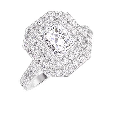 « L'ATELIER » Nº 402323Bague Or blanc 9 carats - Diamant Rectangle 0.5 carat - Halo Diamant - Sertissage Diamant