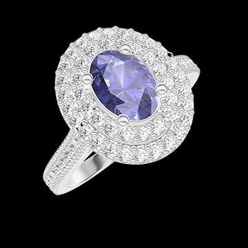 « L'ATELIER » Nº405262Bague Or blanc 18 carats - Saphir bleu Ovale 0.5 carat - Halo Diamant - Sertissage Diamant