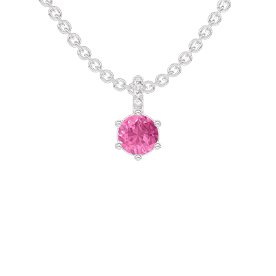 « L'ATELIER » Nº406602Pendentif Or blanc 18 carats - Saphir rose Rond 0.3 carat - Sertissage Diamant - Chaîne Forçat 4.8 (8)