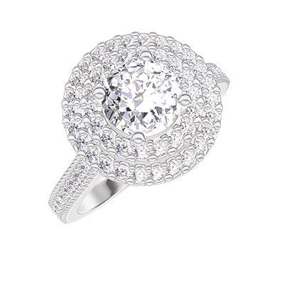 « L'ATELIER » Nº 406935Bague Or blanc 18 carats - Diamant synthétique Rond 0.5 carat - Halo Diamant synthétique - Sertissage Diamant synthétique