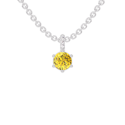 « L'ATELIER » Nº407034Pendentif Or blanc 18 carats - Saphir jaune Rond 0.3 carat - Sertissage Diamant - Chaîne Forçat 4.8 (8)