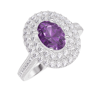 « L'ATELIER » Nº420485Bague Or blanc 18 carats - Améthyste Ovale 0.5 carat - Halo Diamant - Sertissage Diamant