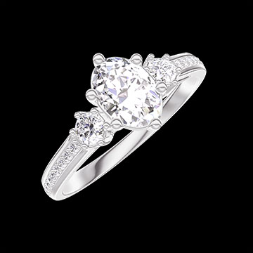 « L'ATELIER » Nº424786Bague Or blanc 18 carats - Diamant synthétique Ovale 0.5 carat - Pierres de côté Diamant synthétique - Sertissage Diamant synthétique