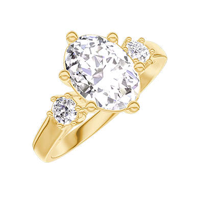 « L'ATELIER » Nº 425981Bague Or jaune 9 carats - Diamant synthétique Ovale 1 carat - Pierres de côté Diamant synthétique