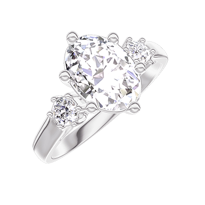 « L'ATELIER » Nº 425982Bague Or blanc 18 carats - Diamant synthétique Ovale 1 carat - Pierres de côté Diamant synthétique