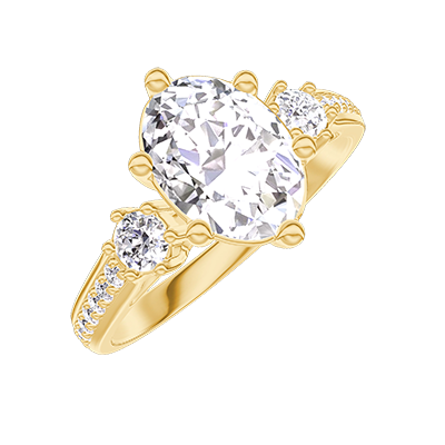 « L'ATELIER » Nº 425985Bague Or jaune 9 carats - Diamant synthétique Ovale 1 carat - Pierres de côté Diamant synthétique - Sertissage Diamant synthétique