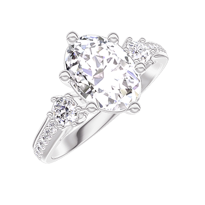 « L'ATELIER » Nº 425987Bague Or blanc 9 carats - Diamant synthétique Ovale 1 carat - Pierres de côté Diamant synthétique - Sertissage Diamant synthétique