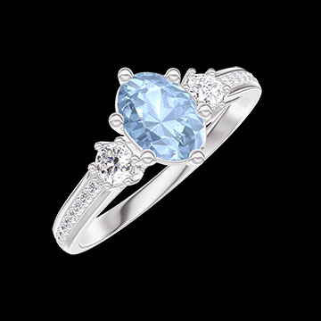 « L'ATELIER » Nº444533Bague Or blanc 18 carats - Topaze bleue Ovale 0.5 carat - Pierres de côté Diamant - Sertissage Diamant