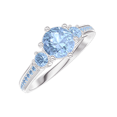 « L'ATELIER » Nº 537449Bague Or blanc 18 carats - Topaze bleue Rond 0.5 carat - Pierres de côté Topaze bleue - Sertissage Topaze bleue