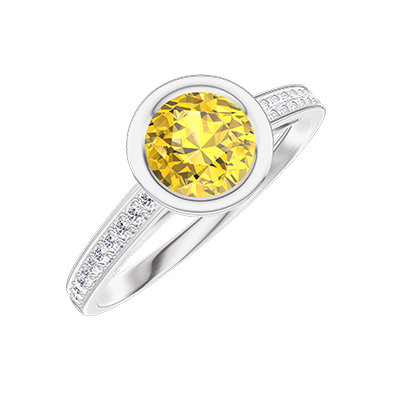« L'ATELIER » Nº599654Bague Or blanc 9 carats - Saphir jaune Rond 0.5 carat - Sertissage Diamant
