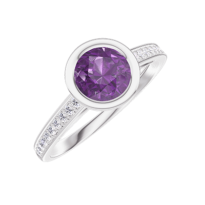 « L'ATELIER » Nº606855Bague Or blanc 18 carats - Améthyste Rond 0.5 carat - Sertissage Diamant