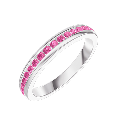 « L'ATELIER » Nº 800064Alliance Or blanc 9 carats - Tour complet Rail Saphir rose 0.56 carat