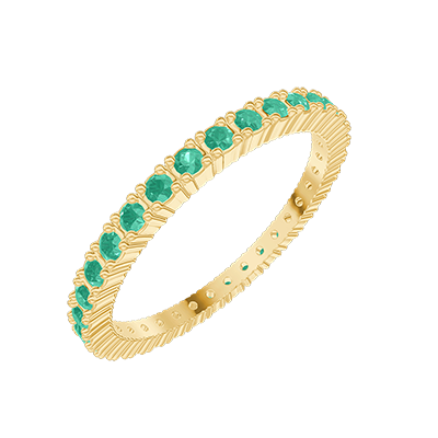 « L'ATELIER » Nº 800169Alliance Or jaune 18 carats - Tour complet Griffes Émeraude 0.46 carat