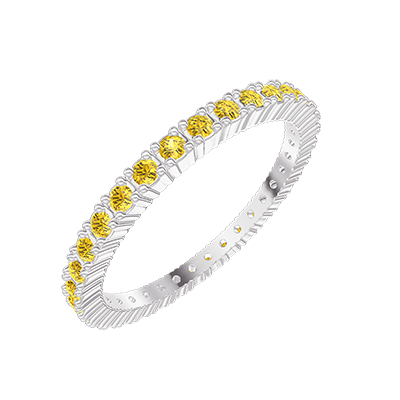« L'ATELIER » Nº 800196Alliance Or blanc 9 carats - Tour complet Griffes Saphir jaune 0.46 carat