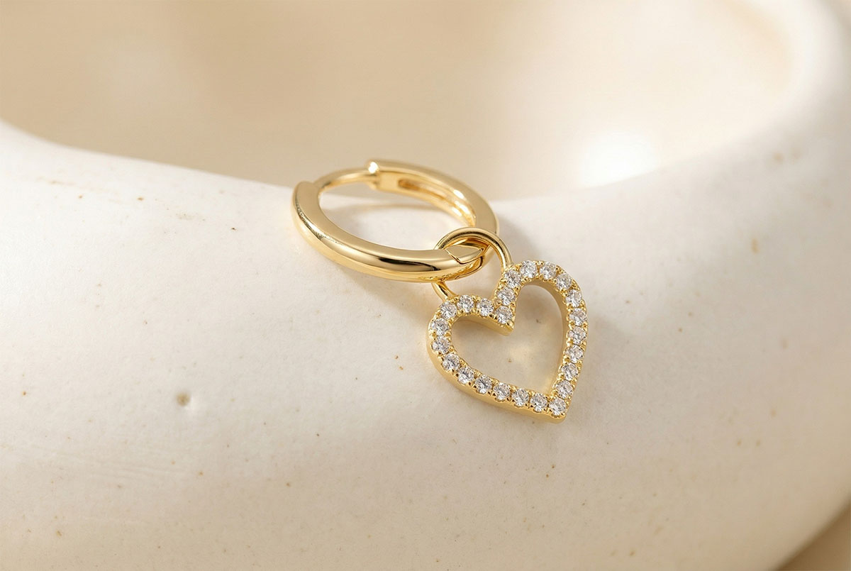 FRAICHEUR Nº 79Boucle d'oreille Coeur - Or jaune 9 carats - Diamant ID : 4544