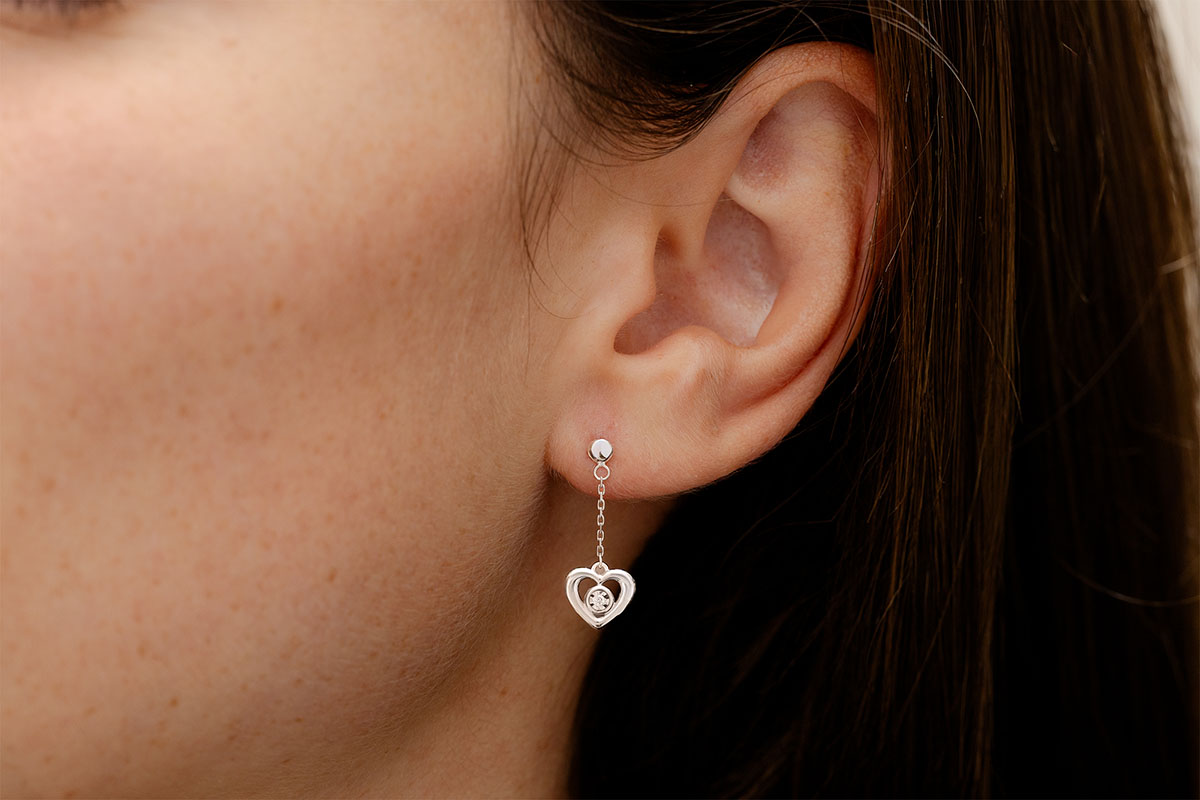 PRéCIEUX SECRET Nº12 Boucle d'oreilles Coeurs pendules - or blanc 9 carats