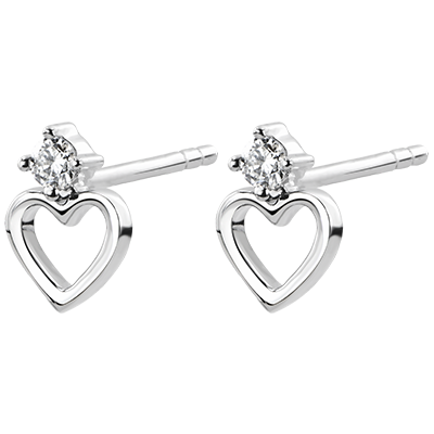 Boucles d'Oreilles Abondance - Coeur Anahata - or blanc 9 carats et diamants