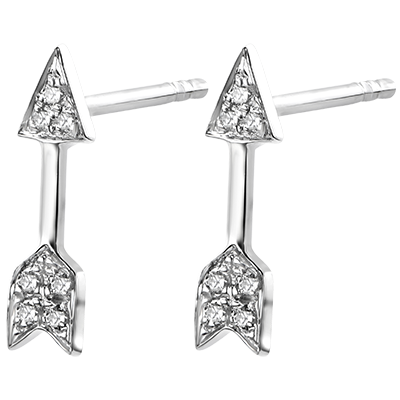 Une paire de boucles d'oreilles flèches pavées diamanrts, qui dénotent à la fois une âme romantique et un esprit rock.